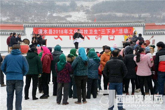 西部決策網(wǎng)-西部大開發(fā)訊(帥華鋒 通訊員 馬存福 楊兆康)大雪紛飛雪飄揚(yáng),過了臘八就是年。1月24日,由清水縣委宣傳部、文明辦、文廣局、縣委黨校、文化館、農(nóng)業(yè)局、縣醫(yī)院、中醫(yī)院、婦保站、文聯(lián)等單位組織開展的2018年文化科技衛(wèi)生“三下鄉(xiāng)”活動走進(jìn)秦亭鎮(zhèn)全莊村。