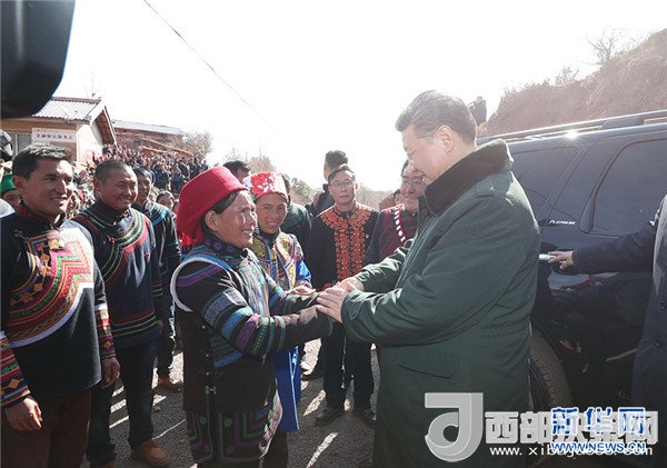這是習(xí)近平在涼山彝族自治州昭覺縣三岔河鄉(xiāng)三河村同鄉(xiāng)親們道別。記者 謝環(huán)馳 攝
