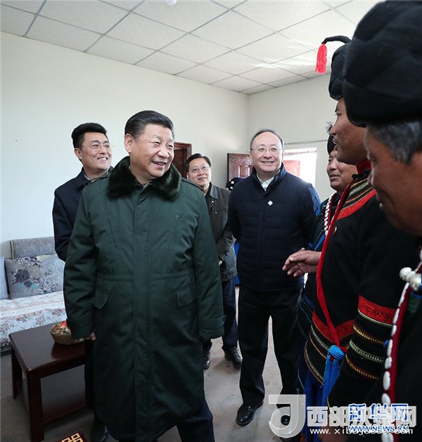 這是習(xí)近平在涼山彝族自治州昭覺縣解放鄉(xiāng)火普村貧困戶吉地爾子家的新居了解生產(chǎn)生活情況。記者 鞠鵬 攝