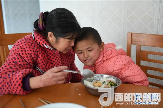 饒梅香(左)在給代養(yǎng)的孩子德高喂飯(2月14日攝)。
