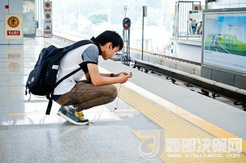 資料圖片:2012年7月18日,在北京地鐵立水橋站,一名年輕人在候車期間查看手機(jī)。新華社發(fā)