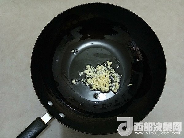 5.鍋中放油,油熱后放入蒜末爆出香味。