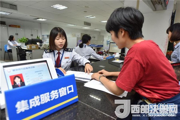 在福建泉州行政服務(wù)中心,地稅駐點(diǎn)工作人員在集成服務(wù)窗口為市民辦理業(yè)務(wù)(2017年11月7日攝)。 新華社記者宋為偉攝