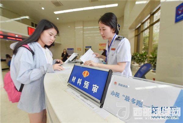 在福建福州地稅綜合辦稅中心辦稅服務(wù)廳,工作人員對納稅人材料進(jìn)行預(yù)審,以節(jié)約其等候時(shí)間(2017年7月18日攝)。 新華社記者宋為偉攝