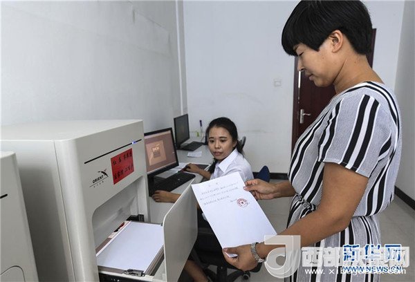 河北香河縣鉗屯鎮(zhèn)公章管理中心工作人員操作智能印控機(jī)為村民蓋章(2017年8月4日攝)。新華社記者李曉果攝