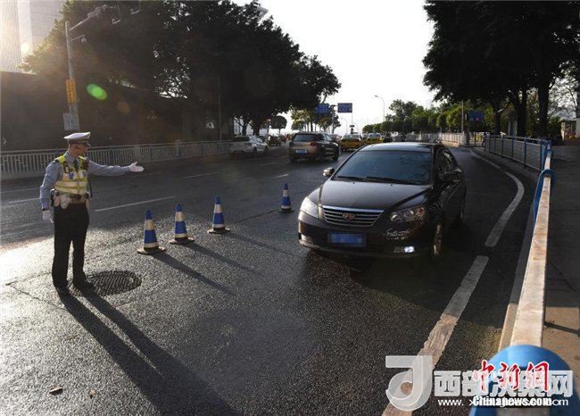重慶市交巡警總隊秩序支隊相關(guān)負責人表示,經(jīng)多方實地勘查、試驗檢測,在環(huán)道內(nèi)讓車輛逆行變道,減少環(huán)道內(nèi)車輛交織量疊加,從而提升交通樞紐運轉(zhuǎn)率這種方式在全國屬首次。周毅攝