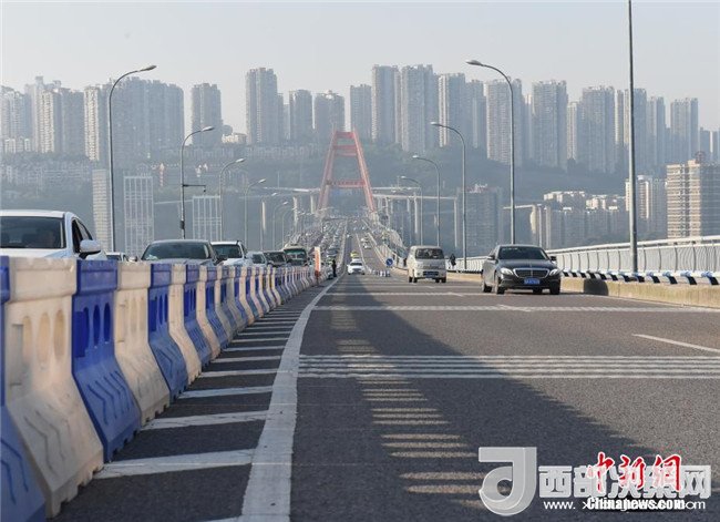 當日,重慶開通全國首創(chuàng)環(huán)道內(nèi)順逆融合車道,不僅是向時間、空間要通行率,也是在環(huán)道形成的“順時針”和“逆時針”兩種通行方式,共同存在的“共享位移轉(zhuǎn)換道”基礎(chǔ)上提高車流量通行率。