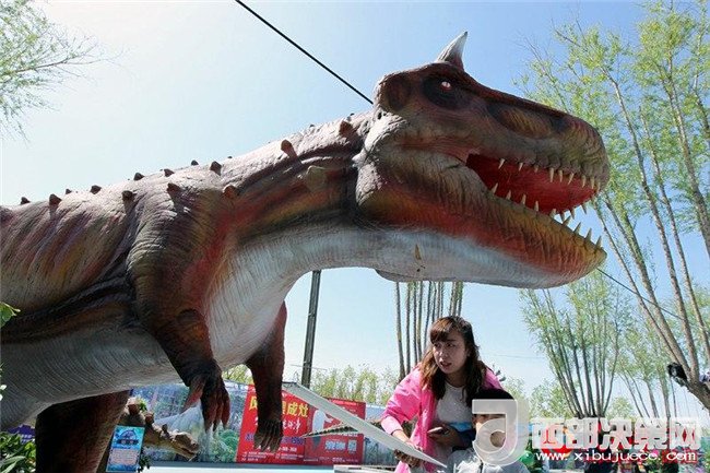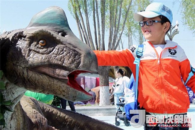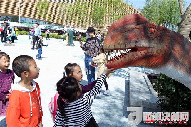 今天,神秘恐龍展在中國花卉博覽園啟幕。花博園里的大型侏羅紀(jì)恐龍展,仿若好萊塢電影里的侏羅世界,飛龍、霸王龍、三角龍……這些真實(shí)還原的仿真恐龍?jiān)煨透鳟?,吸引廣大銀川市民前來觀賞。(實(shí)習(xí)生 海東)