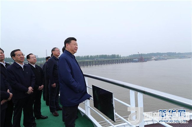 4月26日下午,中共中央總書記、國(guó)家主席、中央軍委主席習(xí)近平在武漢主持召開深入推動(dòng)長(zhǎng)江經(jīng)濟(jì)帶發(fā)展座談會(huì)并發(fā)表重要講話。這是座談會(huì)前,習(xí)近平于25日上午乘船沿江察看兩岸生態(tài)環(huán)境和發(fā)展建設(shè)情況。新華社記者 謝環(huán)馳 攝
