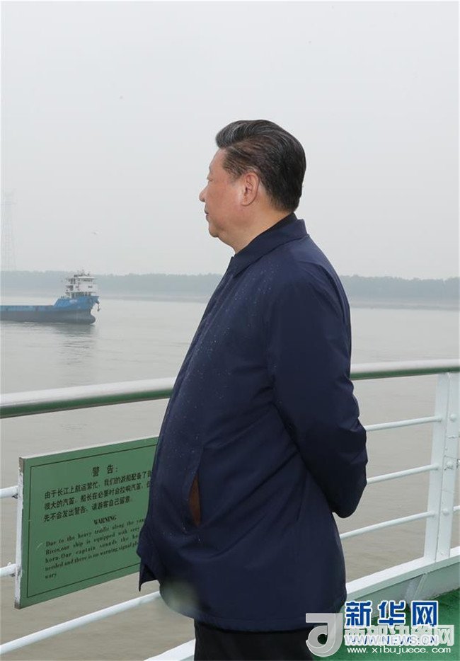 25日一大早,習(xí)近平前往荊州市荊州港碼頭乘船,沿江察看兩岸生態(tài)環(huán)境和發(fā)展建設(shè)情況。途中,習(xí)近平分別聽取湖北省和荊州市關(guān)于非法碼頭整治情況匯報(bào),聽取交通運(yùn)輸部關(guān)于長(zhǎng)江航運(yùn)、航道治理情況和水利部關(guān)于河勢(shì)控制、護(hù)岸工程情況匯報(bào)。
