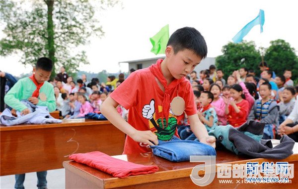 當(dāng)日,九年一貫制的四川省華鎣市慶合初級(jí)中學(xué)舉行學(xué)生生活自理能力大賽。在該校就讀的小學(xué)生和初一、初二年級(jí)學(xué)生參加了穿衣服、洗漱、疊衣服、炒菜、包餃子等項(xiàng)目的比賽。該校把提高學(xué)生生活自理能力作為一項(xiàng)重要的教學(xué)工作,旨在引導(dǎo)孩子們養(yǎng)成良好的生活習(xí)慣。新華社發(fā)(周松林 攝)