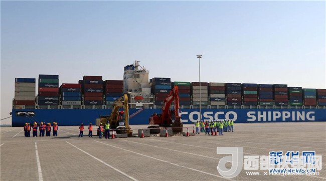 這是2017年11月5日,在阿拉伯聯(lián)合酋長國阿布扎比,中遠(yuǎn)海運(yùn)港口有限公司舉行中遠(yuǎn)海運(yùn)港口阿布扎比碼頭正式動(dòng)工暨場(chǎng)站租賃簽約儀式,標(biāo)志著中國和阿聯(lián)酋“一帶一路”項(xiàng)目建設(shè)取得新進(jìn)展。新華社記者蘇小坡 攝