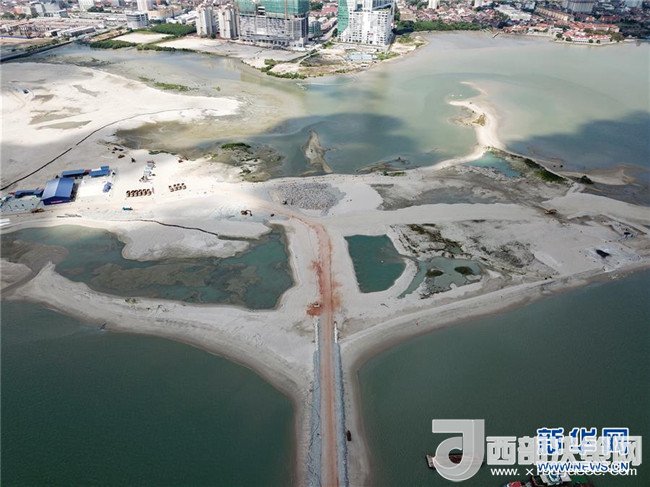 這是2018年2月1日在馬來西亞馬六甲航拍的馬來西亞皇京港填海造地施工現(xiàn)場(chǎng)。按照規(guī)劃,皇京港是一個(gè)集生態(tài)旅游、商業(yè)貿(mào)易、地產(chǎn)開發(fā)、深水碼頭和臨海工業(yè)園建設(shè)為一體的綜合性項(xiàng)目,中國電建負(fù)責(zé)吹砂回填、護(hù)岸及防波堤修建等工作。新華社記者劉彤 攝