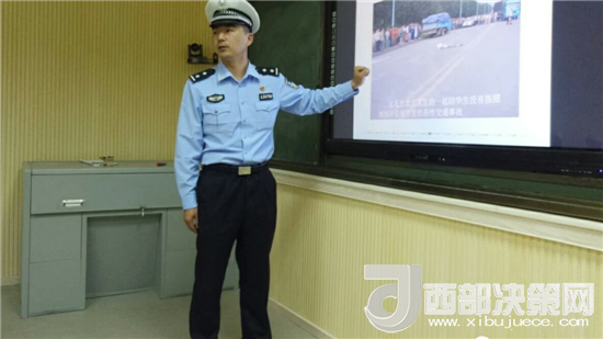 西部決策網(wǎng)——西部大開發(fā)訊(帥華鋒 通訊員 馬存福 施廣永)為進一步加強轄區(qū)農(nóng)村道路交通安全管理,減少交通事故的發(fā)生,營造良好有序的交通氛圍,5月16日,甘肅兩當縣公安局交警大隊民警走進西坡鎮(zhèn)九年制學校,為學生講解交通安全出行常識。