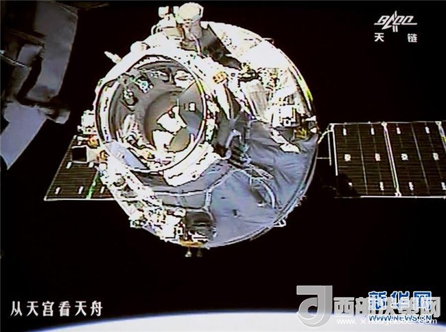 2017年4月22日12時(shí)23分,天舟一號(hào)與天宮二號(hào)順利完成自動(dòng)交會(huì)對(duì)接。這是天舟一號(hào)與天宮二號(hào)進(jìn)行的首次自動(dòng)交會(huì)對(duì)接,也是我國(guó)自主研制的貨運(yùn)飛船與空間實(shí)驗(yàn)室的首次交會(huì)對(duì)接。圖為北京航天飛行控制中心大廳大屏幕上顯示的天舟一號(hào)向天宮二號(hào)靠攏的畫面(2017年4月22日攝)。新華社發(fā)(王泗江 攝)