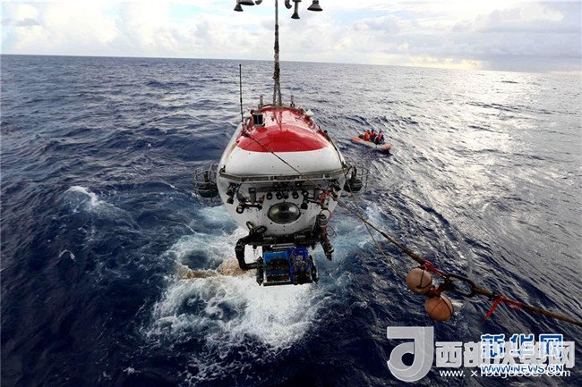 “蛟龍”號(hào)完成下潛后回到“向陽(yáng)紅09”船甲板(2017年6月13日攝)。新華社記者劉詩(shī)平攝