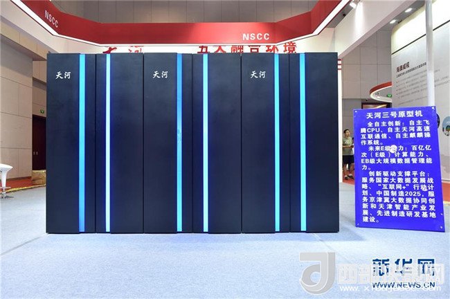 在天津梅江會(huì)展中心展出的我國(guó)新一代百億億次超級(jí)計(jì)算機(jī)“天河三號(hào)”原型機(jī)(2018年5月17日攝)。新華社記者李然攝