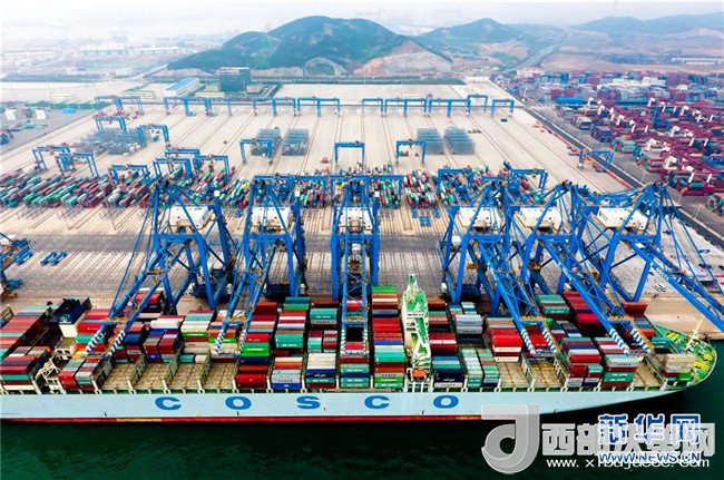 集裝箱船在青島港全自動(dòng)化集裝箱碼頭靠泊作業(yè)(2017年5月10日攝)。青島港全自動(dòng)化集裝箱碼頭是我國(guó)完全自主創(chuàng)新并設(shè)計(jì)建設(shè)的亞洲首個(gè)、全球領(lǐng)先的全自動(dòng)化碼頭。新華社記者朱崢攝