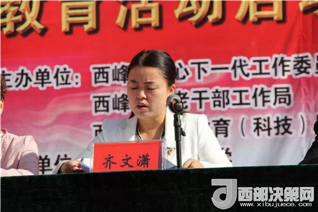 啟動儀式由西峰區(qū)人民政府副區(qū)長、關(guān)工委副主任齊文瀟主持,并作“傳承紅色基因,爭做時代新人”主題教育動員講話。她指出,開展“傳承紅色基因,爭做時代新人”主題教育活動,是為貫徹落實習(xí)近平新時代中國特色社會主義思想對關(guān)心下一代工作提出的新要求作出的重大部署和安排,主要目的在于引導(dǎo)廣大青少年認清自己的“根”和“魂”,教育引導(dǎo)廣大青少年從紅色基因中汲取道德滋養(yǎng)和文化精髓,自覺踐行社會主義核心價值觀,堅定理想信念,為實現(xiàn)偉大復(fù)興的中國夢做出應(yīng)有的貢獻。