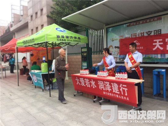 西部決策網(wǎng)——西部大開發(fā)訊(帥華鋒 通訊員 齊彩云 嵇祥)6月7日,建行慶陽分行組織員工,在這個特別的日子開展了“大愛若水,潤澤建行”助力高考學(xué)子活動,在高考期間,考生及家長可在我行設(shè)立的補水站處憑準考證領(lǐng)取1瓶礦泉水,為寒窗苦讀的學(xué)子與焦急等待的家長送去了關(guān)懷。