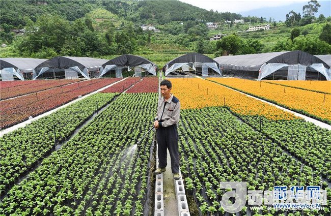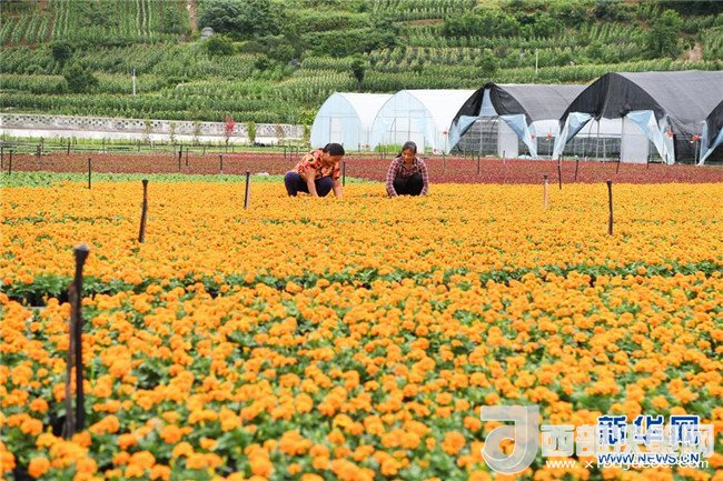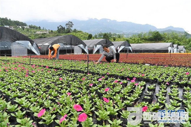 6月12日,艷山紅村村民在村里的花卉基地勞作。近年來,重慶市武隆區(qū)羊角鎮(zhèn)艷山紅村探索“公司+村集體+農(nóng)戶+基地”的經(jīng)營模式,發(fā)展花卉種植等產(chǎn)業(yè),實(shí)現(xiàn)了“農(nóng)村資源變資產(chǎn)、資金變股金、農(nóng)民變股東”,幫助當(dāng)?shù)剞r(nóng)民通過保底分紅、效益分紅、務(wù)工收益等方式脫貧增收。新華社記者王全超攝