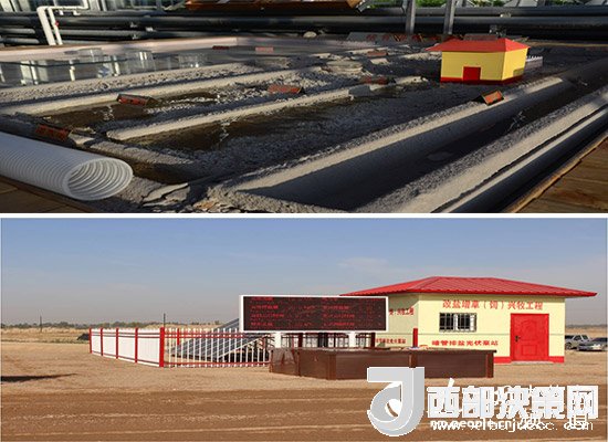 暗管排鹽光伏泵站模型和已經(jīng)建設(shè)成功的暗管排鹽光伏泵站
