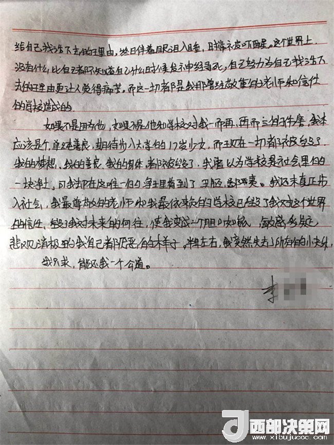 在李某奕覺得,自己并未做錯(cuò)什么,學(xué)校寧要讓她轉(zhuǎn)校也不調(diào)換一名老師,這對(duì)她來講不公平。從此她開始焦慮、煩躁、夜不能寐,一直靠安眠藥睡眠,以至后來不能正常上課。她一直想要一個(gè)公道,直至她跳樓自殺也未能如愿。