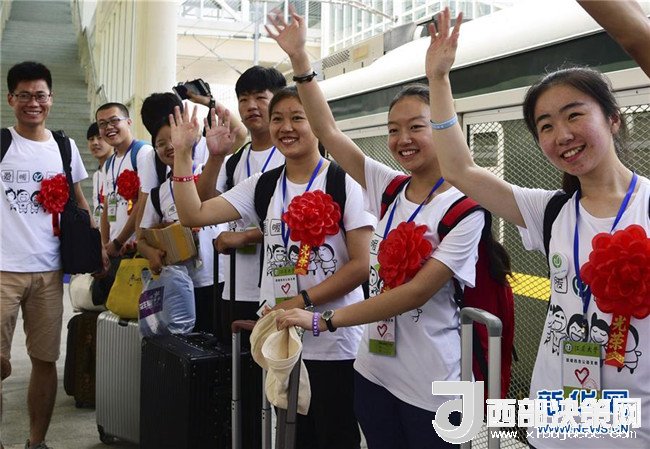 7月10日,前往寧夏西吉支教的志愿者與前來(lái)送行的師生揮手告別。
