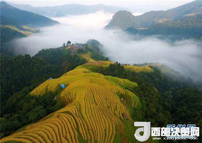 黔東南苗族侗族自治州榕江縣郊外的梯田風光(2017年9月18日無人機拍攝)。