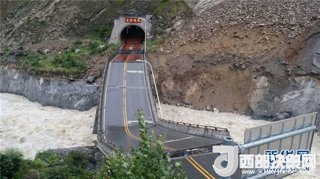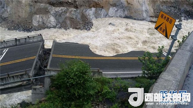 暴雨致四川茂縣國(guó)道213線一處橋梁垮塌