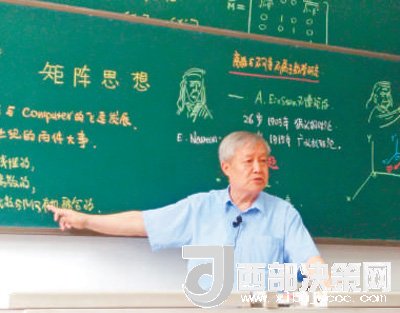這位74歲的老教授是西安電子科技大學(xué)原校長(zhǎng)、首屆國(guó)家教學(xué)名師獎(jiǎng)獲得者。從教幾十年,他一直堅(jiān)持手寫板書,教學(xué)嚴(yán)謹(jǐn)又生動(dòng)。“畫畫是我小時(shí)候的愛好,為了吸引學(xué)生的注意力,讓他們生動(dòng)地記住教學(xué)內(nèi)容,就放到了板書里。”