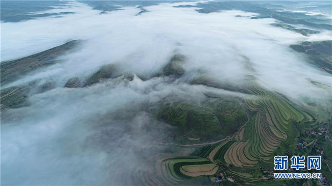 寧夏彭陽:最美旱作梯田云海宛如仙境