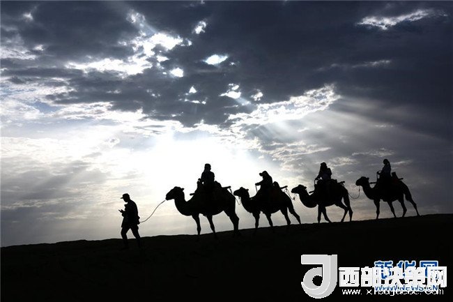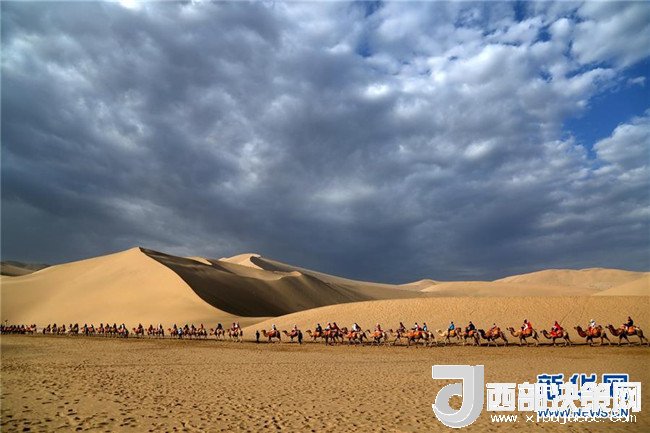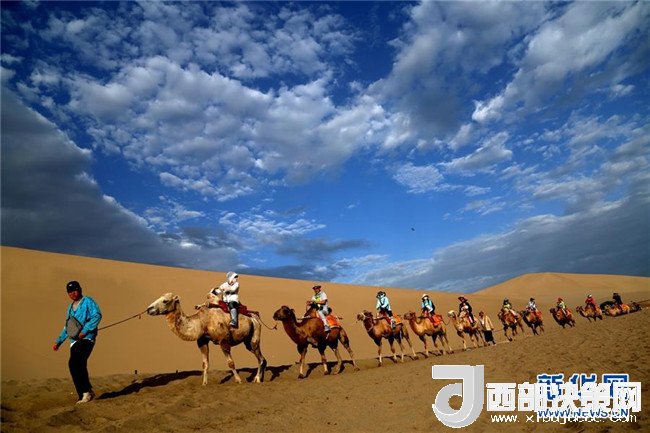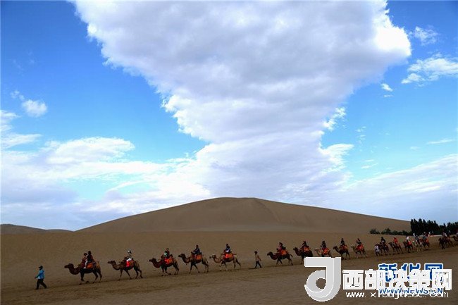 當(dāng)日,甘肅省敦煌市鳴沙山月牙泉景區(qū)云景如畫,美不勝收,游客徜徉其中,盡情欣賞大漠風(fēng)光。 新華社發(fā)(張曉亮 攝)