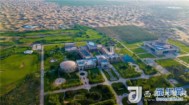 這是位于庫布其沙漠中的億利集團阿木古龍甘草健康產(chǎn)業(yè)園(7月11日無人機拍攝)。 新華社記者 彭源 攝