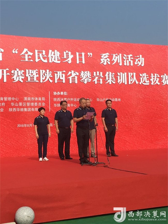 陜西省社會(huì)體育管理中心主任田凱、陜西省登山協(xié)會(huì)主席陳錚、渭南市體育局副局長王曉燕、陜西華山旅游集團(tuán)有限公司副總經(jīng)理趙江峰、華陰市體育中心主任潘飛出席本次活動(dòng)開幕式。