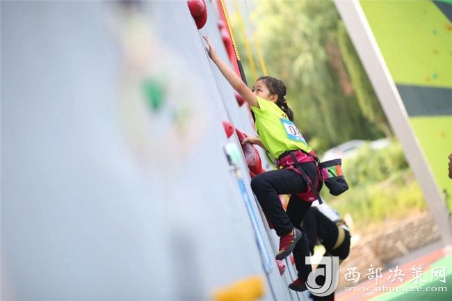 與此同時(shí),另一邊的攀石賽道上,陜西省攀巖集訓(xùn)隊(duì)教練團(tuán)隊(duì)首席教練員,邱洪樹為大家?guī)砹伺适荣惖谋硌葙?,邱洪樹靈活的姿態(tài)與輕松熟練的攀巖技術(shù)吸引了觀賽群眾的目光,解說員生動(dòng)地為現(xiàn)場觀賽群眾講解了攀石比賽的規(guī)則與得分方式。最終,邱洪樹輕松完成了五組攀石巖壁的表演賽。