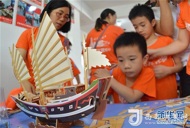 為進一步豐富廣大外來務工人員子女的暑期生活,福建省泉州市泉港區(qū)先后邀請轄區(qū)130多戶外來務工人員家庭,一起參觀當?shù)胤逦补懦?,體驗海絲文化。新華社發(fā)(林弘梫 攝)