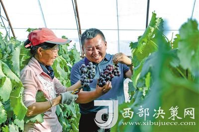 村民劉喜梅、郭翠蓮和姐妹們有說有笑地摘著大串葡萄,發(fā)自內(nèi)心的喜悅洋溢在臉上。“過去,就種點地靠天吃飯,趕上好年景,辛辛苦苦在地里一年忙到頭,人均收入不到1000元。現(xiàn)在我們不用頂著烈日看天吃飯了,在棚里摘葡萄、修枝剪葉,每月就掙3000到4500多元,這是做夢都想不來的好事。這得感謝黨的好政策!感謝王萬斌!”劉喜梅高興地說。