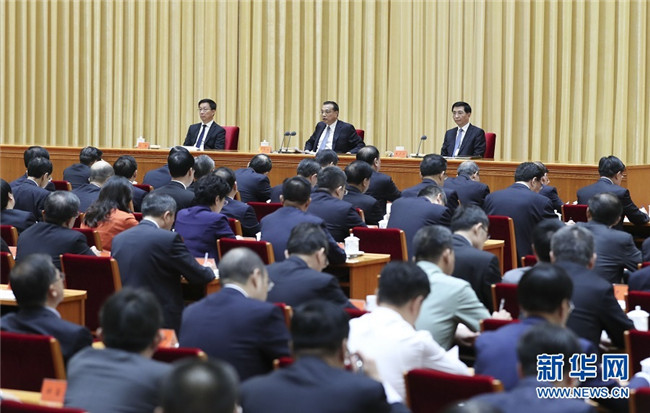 李克強(qiáng)在會上講話。汪洋、王滬寧、趙樂際、韓正出席會議。