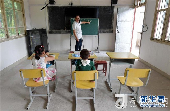 高自仁給一年級的孩子們上語文課(9月3日攝)。新華社記者 彭昭之?dāng)z