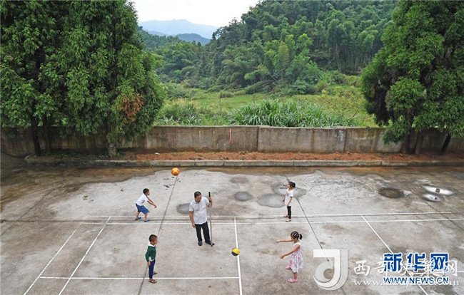 高自仁帶著孩子們在學(xué)校的小操場上體育課(9月3日攝)。新華社記者 萬象攝