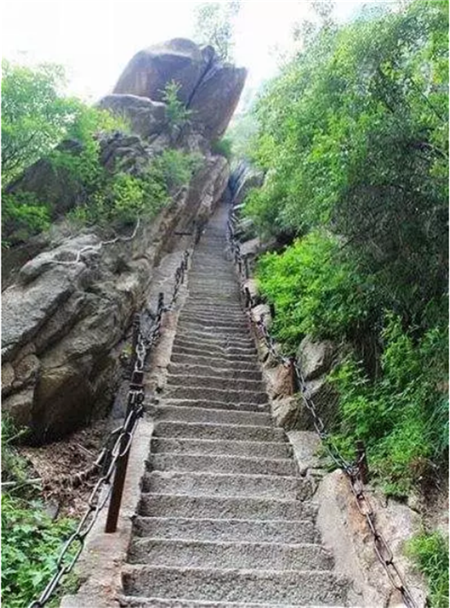 在爬上千尺幢以后,每個(gè)人除了大口的喘氣,就是站在那方平臺(tái)上極目遠(yuǎn)眺。這時(shí),看到的是連綿的山峰和山谷里曾經(jīng)走過(guò)的彎彎曲曲的山路,心神便會(huì)為之一振,豪情頓生滿懷。濕透了的衣衫,大汗淋漓的膀子,紅光滿面的臉龐,也許還有酸疼的腰和腿,加上從未有過(guò)的心靈的放飛,雖然感覺(jué)身體有些困乏,但那是一種極樂(lè)無(wú)比的體驗(yàn)。
