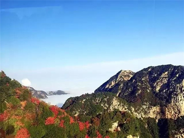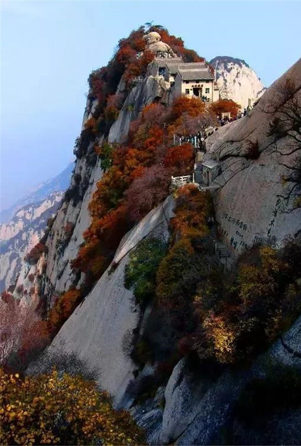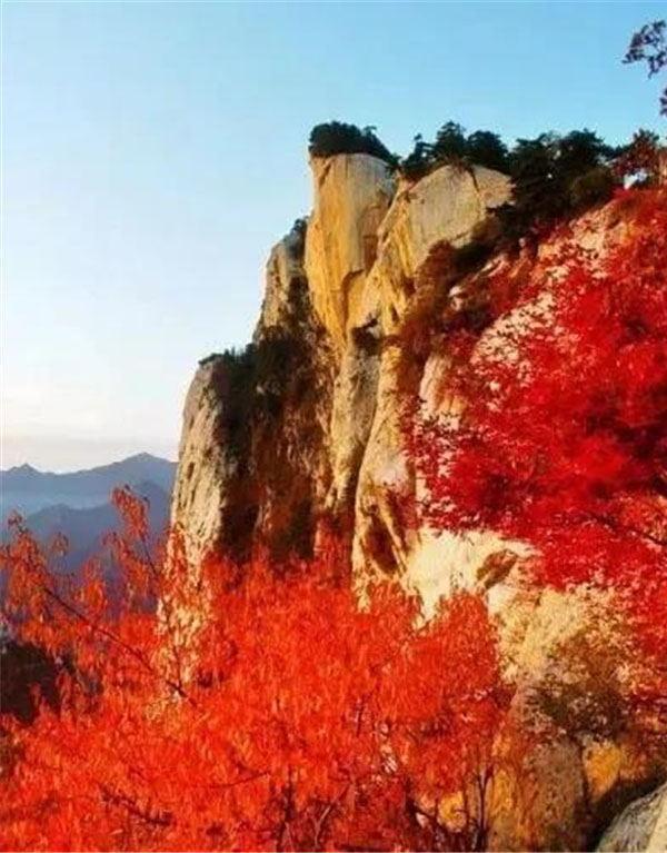 這里的秋天更容易令人迷醉,一步一景步步生情,這里溫度適中,紅葉滿山,山崖為底,松檜為墨,是登山拍攝的最佳季節(jié)。秋風(fēng)好比一支神奇的彩筆,肆意揮灑,將華山繪成了一幅燦爛的畫卷。從山腳下的郁郁蔥蔥到山頂上的紅黃相間,華山上的每一個臺階都浸染在了紅葉的絢爛中。