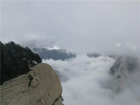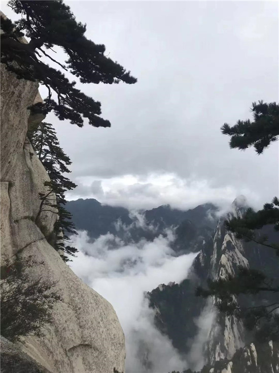 秋季,云海經(jīng)常出現(xiàn)在雨后,融入華山云海,騰云駕霧,風(fēng)拂衣抖,有種飛一樣的感覺。眼前陡壁峭崖蹤影全無,高聳的山峰如飄渺的仙島。華山已無險(xiǎn)可防可守,任憑滾滾云海,洶涌澎湃的肆虐。云依著霧,霧掛著云,依偎纏綿,飛升莫測,風(fēng)生變幻。一會兒如獅虎,如鷹鷂,一會兒似神兵,似仙女,蒸騰極富想象力。華山峰巒似懸島明滅,若隱若現(xiàn)。如果夠幸運(yùn)還會看到彩虹哦!