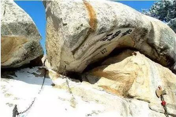 華山文化可謂博大精深,這些鐫刻在神山圣水之間的文字,他們是一個(gè)符號(hào),更是一份歷史的活化石。有時(shí)雖寥寥幾筆,卻是一個(gè)時(shí)代的銘記,“智取華山”雖然只有四個(gè)字,但是它卻讓后人牢牢記住了在這座山上曾經(jīng)發(fā)生的英雄故事。這四個(gè)字是劉吉堯2004年來(lái)的時(shí)候題的詞,劉吉堯是全國(guó)特級(jí)戰(zhàn)斗英雄,他在近90歲時(shí)還經(jīng)常華山,這就是智取華山路離北峰最近的那一段路。