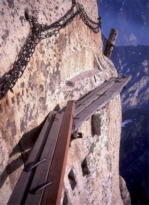 史學(xué)家考證:記載華山最早的書籍是《尚書·禹貢篇》,《史記·封禪書》載有黃帝、堯、舜巡游華山事。人們最早登臨華山主峰的記載見于《韓非子·外儲說左上》。酈道元的《水經(jīng)注》顯示,今日登山路已現(xiàn)雛形,至唐代已開辟出從華山峪經(jīng)青柯坪、云臺峰登頂?shù)穆肪€,即“自古華山一條路”,距今已有一千多年了。