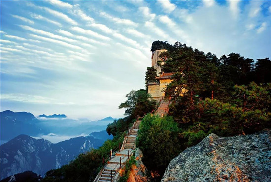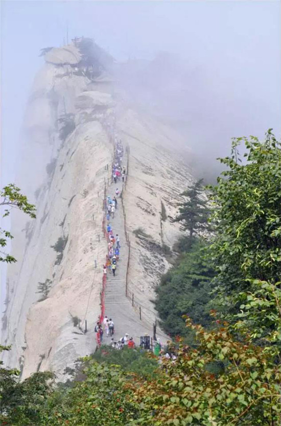 華山的登山道路自古以來以奇險(xiǎn)著稱,而且只有一條道路,別處不能通達(dá),可謂天下奇觀。“自古華山一條路”的奇特景觀,造就和形成了華山特出的道路景觀文化。這條道路越石潤、穿石峽臨峭壁、就危崖,奇絕壯美,峻險(xiǎn)峭麗,景色各異,各顯其奇,形成了異景紛呈的脊嶺道路、巖隙道路、絕壁道路、凌空棧道等多種道路景觀,加之人們給這些道路上演繹了許多美麗的傳說故事,使華山的道路充滿了濃郁的文化氛圍。