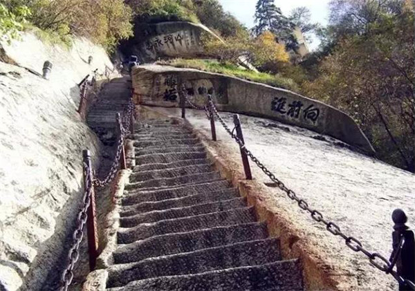 位于華山東峰,是通往下棋亭的必由之路。其路鑿于倒坎懸崖上,下視唯見(jiàn)寒索垂于凌空,不見(jiàn)路徑。