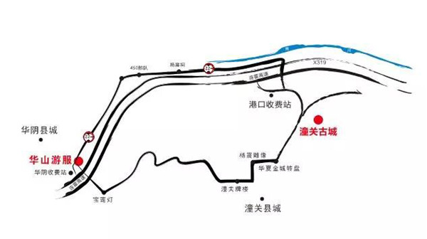 從西安、渭南、運城坐高鐵到華山北,之后在高鐵站東側(cè)華陰—潼關(guān)站牌處到潼關(guān)港口向南200米即到;