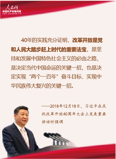 40年的實(shí)踐充分證明,改革開放是黨和人民大踏步趕上時(shí)代的重要法寶,是堅(jiān)持和發(fā)展中國特色社會(huì)主義的必由之路,是決定當(dāng)代中國命運(yùn)的關(guān)鍵一招,也是決定實(shí)現(xiàn)“兩個(gè)一百年”奮斗目標(biāo)、實(shí)現(xiàn)中華民族偉大復(fù)興的關(guān)鍵一招。